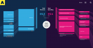 De datavisualisatie USAfacts van designstudio Artefact is een duidelijk streven naar transparantie. Met deze visualisatie geeft Artefact inzicht in de inkomsten en uitgaven van de Amerikaanse overheid. Aan de linkerkant staat een gedetailleerde weergave van alle inkomsten (vooral via belastingen) op landelijk, gemeentelijk en regionaal niveau; daartegenover staan alle uitgaven. Door de data zo transparant mogelijk te presenteren geeft Artefact de kijker de mogelijkheid hier zijn of haar eigen conclusies uit te trekken. (Zie filmpje op www.artefactgroup.com.)