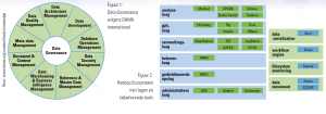 Data governance is een beheersingsstrategie die ervoor zorgt dat de invoer van gegevens door een teamlid of door geautomatiseerde processen aan precieze normen voldoet.3 De Global Data Management Community DAMA vat de activiteiten rond data governance samen in afbeelding 1. Denk bijvoorbeeld aan het aansluiten op de business, de definitie van data-eenheden en het bewaken van de integriteit van data en het datamodel. Het bewaken van de kwaliteit is dus niet zozeer een technische activiteit, maar vooral ook een informatie-inhoudelijke. Het gaat om het vastleggen van datadefinities, het bijhouden van woordsystemen en het leggen van inhoudelijke relaties zodat de inhoud van de informatie voldoende is gestandaardiseerd.