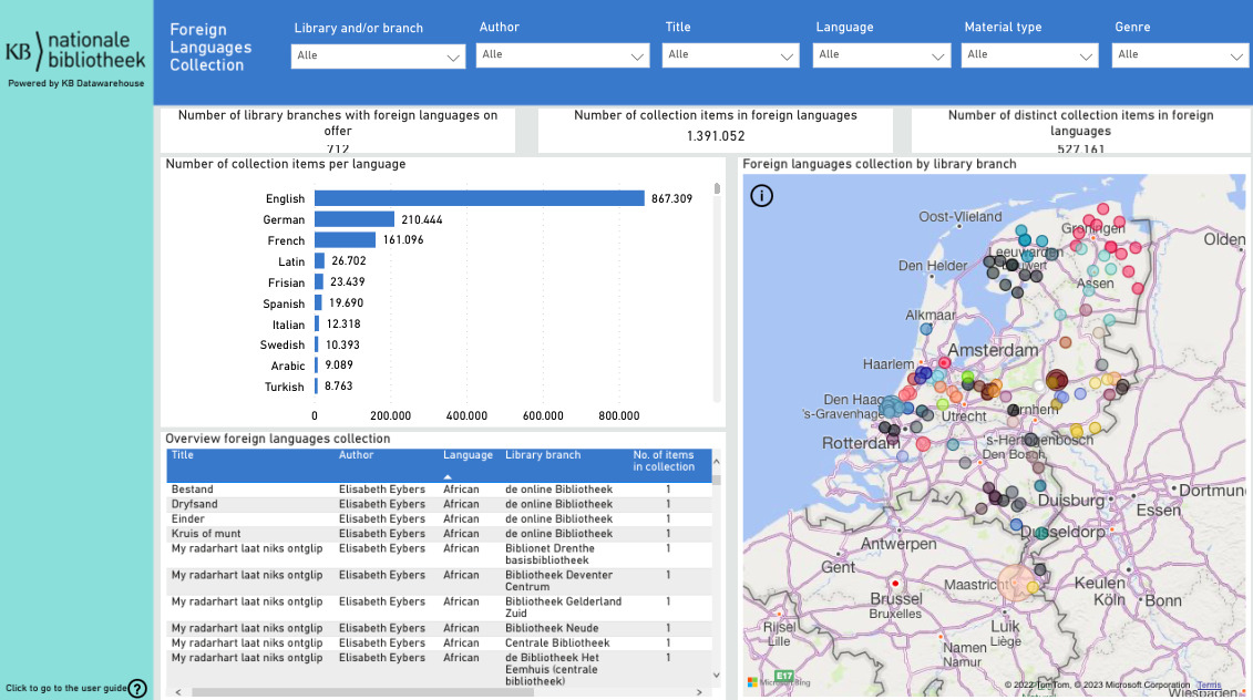 De KB heeft een (Engelstalig) dashboard gelanceerd om de anderstalige collectie van bibliotheken beter vindbaar en makkelijker doorzoekbaar te maken. Hierin zijn al het anderstalige materiaal in Nederlandse bibliotheekcollecties en dat van de online Bibliotheek opgenomen.