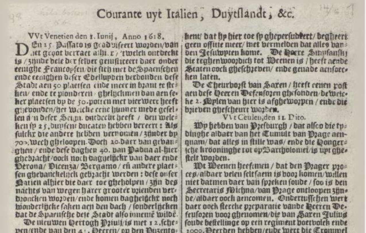 In 2018 is het 400 jaar geleden dat de eerste Nederlandse krant verscheen, een van de oudste kranten ter wereld. Reden voor de Koninklijke Bibliotheek (KB) om een expositie te wijden aan 400 jaar kranten.
