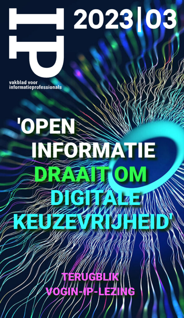 Ter info: je ontvangt de negen IP’s per jaar vijf keer als digitaal magazine in je mailbox en vier keer op papier in je fysieke brievenbus. Daarnaast kun je alle bijdragen in IP vanaf jaargang 2011 teruglezen in het online archief op informatieprofessional.nl, dus ook dit digitale nummer.