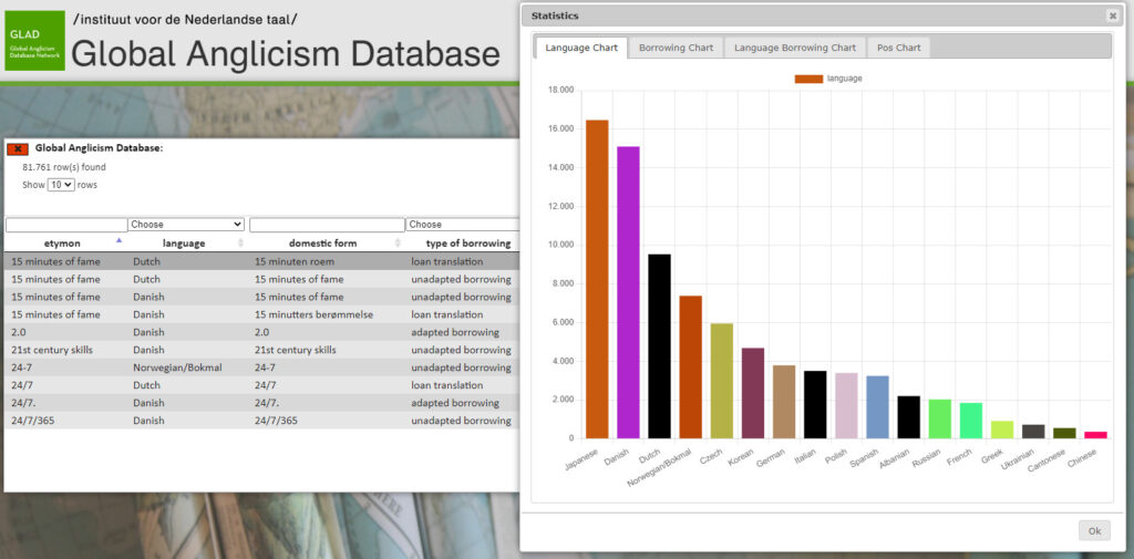 In het Japans komen meer Engelse leenwoorden voor dan in het Nederlands. In het Nederlands worden die Engelse woorden vaker letterlijk vertaald dan in het Japans. Dit soort informatie is te vinden in de Global Anglicism Database (GLAD) die het Instituut voor de Nederlandse Taal (INT) openbaar heeft gemaakt.