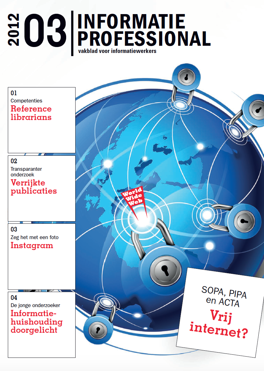 Dit nummer staat grotendeels in het teken van beangstigende ontwikkelingen rond internet. Niet alleen blijft de privacy steeds op het spel staan, steeds meer zelfs, ook zijn er alsmaar aanvallen op de vrije toegang tot informatie. Jeroen de Boer gaat in op de gevaren van SOPA, PIPA en ACTA en roept Nederlandse informatieprofessionals op zich kritischer op te stellen.