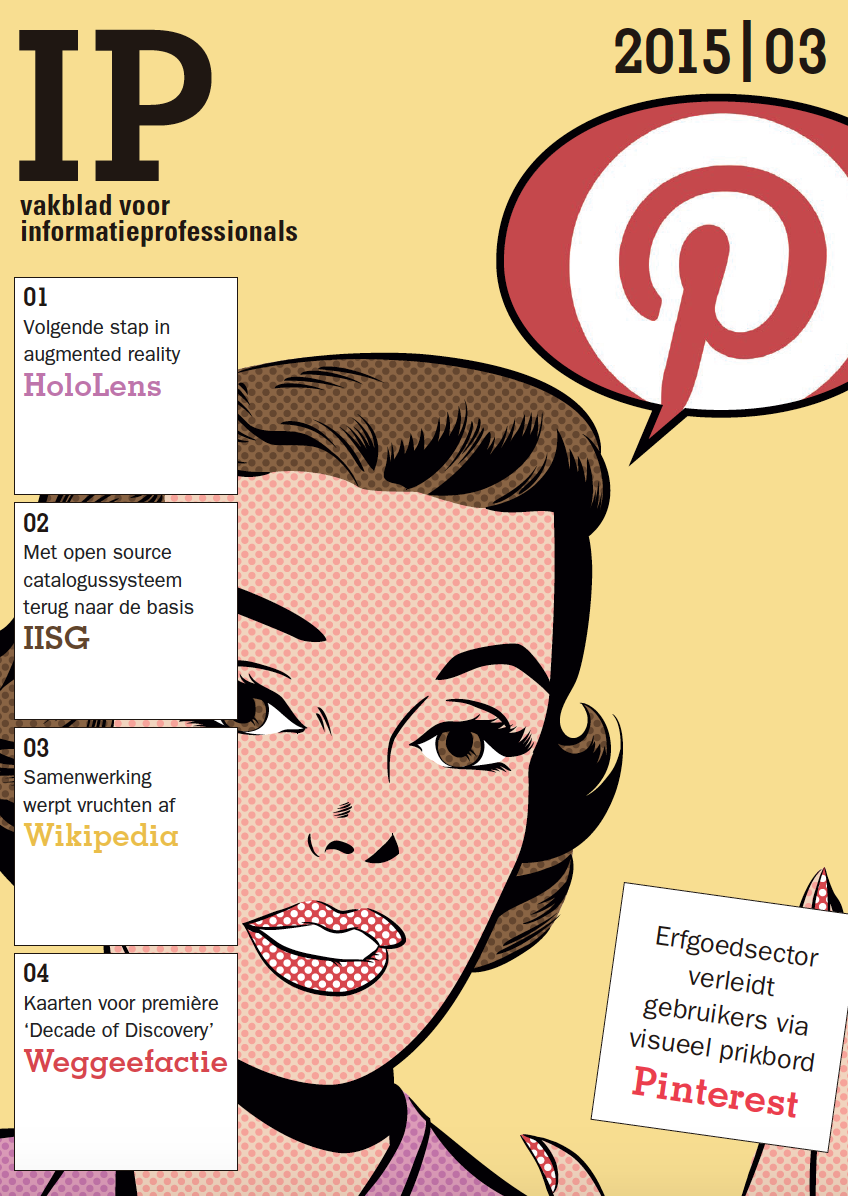 Ook Pinterest verdient een plaats in de social media-strategie van bibliotheken en erfgoedinstellingen. Rob Coers laat voorbeelden zien en geeft tips over pinnen, cureren en promoten.Het Internationaal Instituut voor Sociale Geschiedenis zocht en vond een open source catalogussysteem in Evergreen. Wat leverde het op? IISG werd minder afhankelijk van externe dus dure consultants en leveranciers en profiteert van een community waarin oplossingen worden gedeeld.
