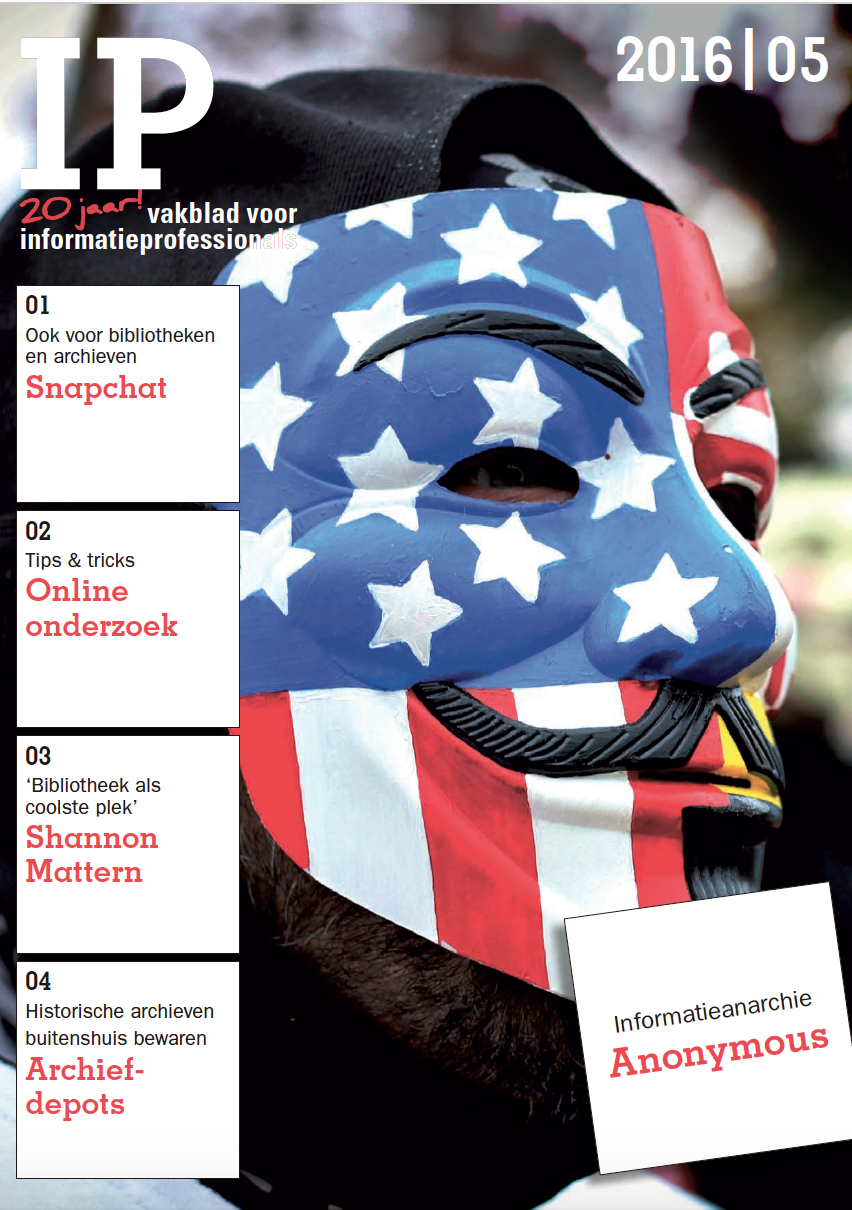 Jong en dynamisch geldt zeker ook voor de spannende bijdrage van Janssen en Gijsen over de hacktivisten van het cybercollectief Anonymous. Nooit gedacht dat ze eigenlijk onze collega’s zijn. Een mooi contrast vormt de bijdrage over de startup Candle. De oprichters omschrijven zichzelf als de Blendle voor christelijke tijdschriften. En ook in de archiefwereld is volop beweging, zoals blijkt uit een artikel over depots op afstand.