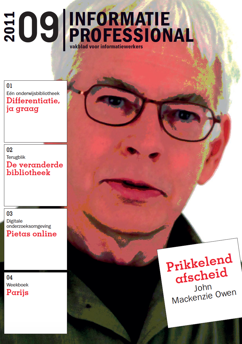 Naast deze oude rotten komt Leen Liefsoens aan het woord, masterstudent Culturele Informatiewetenschap. Zij volgde het laatste werkcollege van John Mackenzie en geeft een mooi kijkje in diens ‘keuken’. Zijn studenten vormen de brug tussen de oude en de jonge generatie informatieprofessionals.