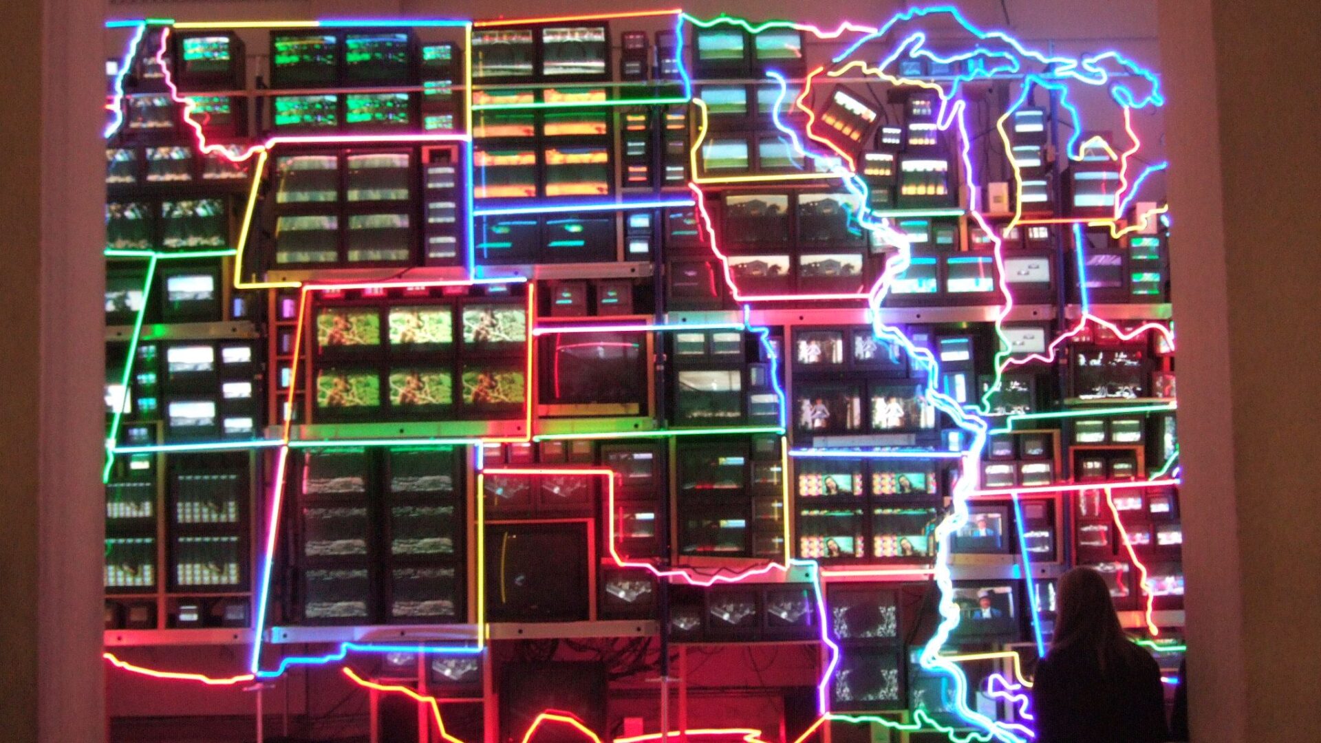 Foto boven: Nam June Paik, Electronic Superhighway, 1995.