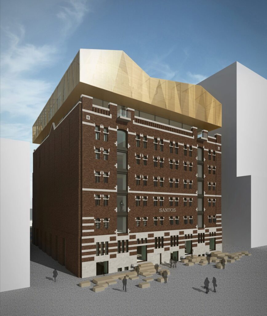 Santos werd ontworpen door architecten J.P. Stok Wzn en J.J. Kanters in opdracht van N.V. Blauwhoedenveem; een pakhuis dat in 1903 de deuren opende en diende als opslagplaats voor Braziliaanse koffie. Sinds 2012 is het Duitse designconcern Stilwerk bezig met de renovatie van het zwaar verwaarloosde gebouw. Deze is nagenoeg afgerond. De komende tijd wordt het geschikt gemaakt voor het Nederlands Fotomuseum. De opening in Santos staat gepland voor 2025. Tot die tijd blijft het museum geopend in bedrijfsverzamelgebouw Las Palmas, waarin het sinds 2007 is gevestigd.