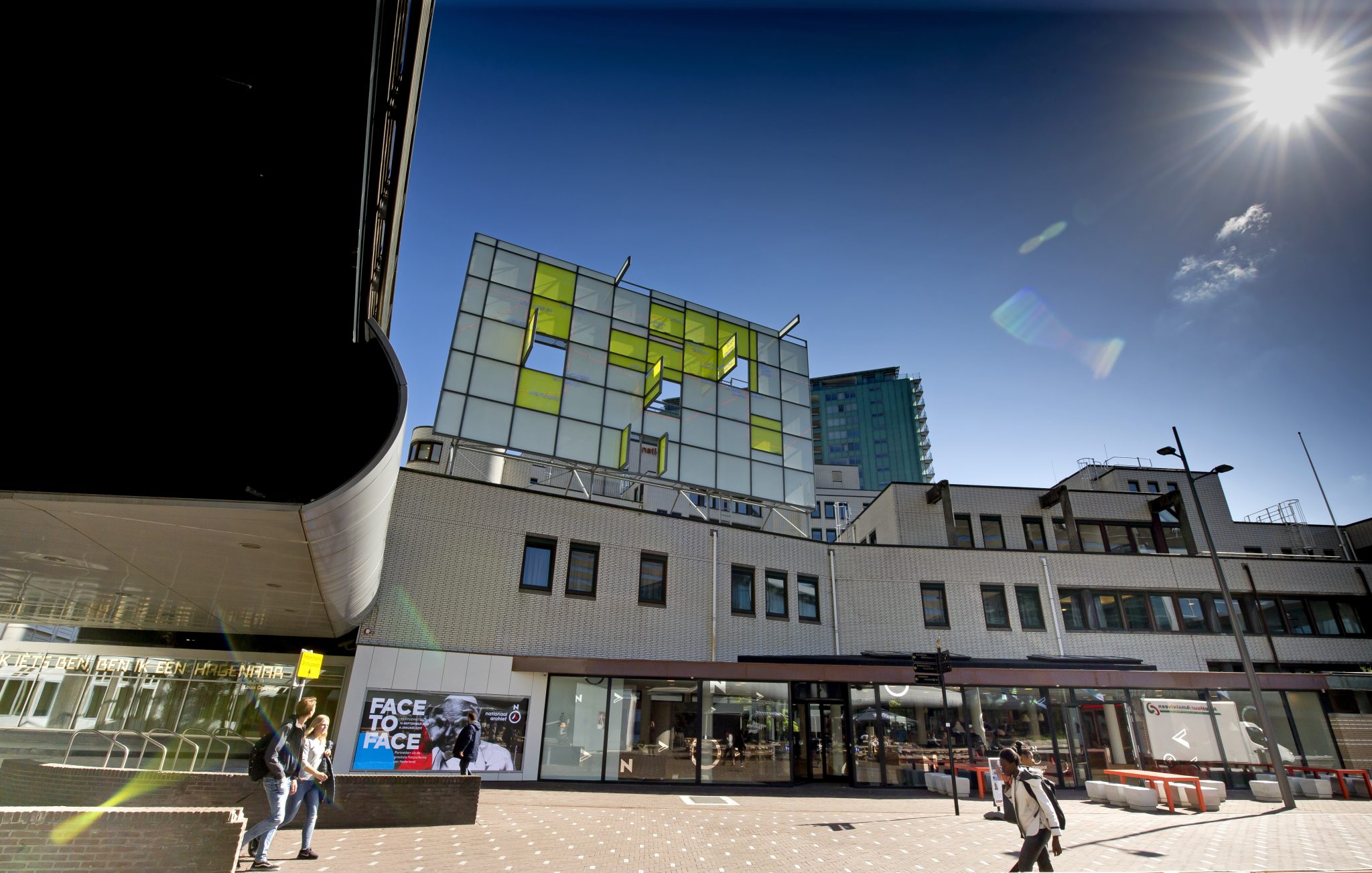 Het gebouw van het Nationaal Archief in Den Haag heeft sinds kort een nieuwe entree. Het straalt nu openheid en toegankelijkheid uit. En videoschermen laten zien wat er te beleven valt.