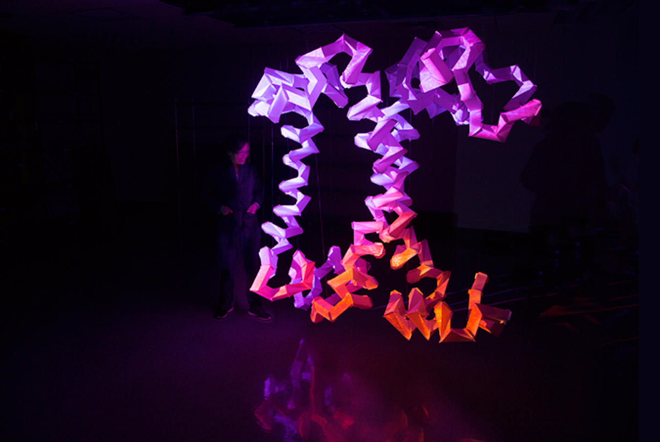 Een aantal kunstenaars in CODA Paper Art 2017 stelt onderzoek, innovatie en techniek centraal in hun werk. Light Harvest van de Chinese Jiangmei Wu is een uitvergrote versie van het eiwitcomplex dat een belangrijke rol speelt bij fotosynthese . Het werkt toont niet alleen de precieze driedimensionale structuur en de functie van het eiwit, maar ook de schoonheid van de natuur op atomisch niveau. Wu verbindt in haar manshoge sculptuur verschillende technieken en disciplines met elkaar. Zo combineert ze Nojima, een Origami-vouwtechniek met papier dat met een laser gesneden is een middels een computerprogramma bewerkt is met een patroon. Met ‘video mapping’ en ‘processing’ realiseert zij een projectie die op sculptuur wordt afgespeeld. De combinatie van biologie, scheikunde, papiervouwkunst en de nieuwste digitale technieken maken Light Harvest tot een intrigerend werk dat balanceert op de grens van beeldende kunst en wetenschap.