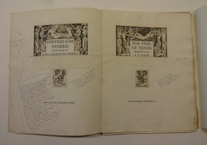 (Beeld: Plakproef met aantekeningen van ‘The vigil of Venus’ van John Buckland Wright, Huis van het boek | Museum Meermanno)