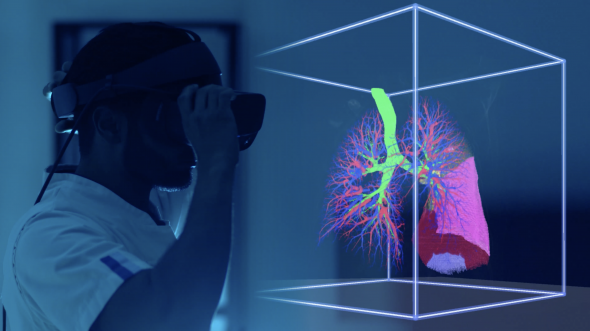 Dankzij 3D virtual reality is het tegenwoordig mogelijk om bij longtumoren longsparende operaties uit te voeren. Er hoeft niet meer dan nodig gezond longweefsel weggesneden te worden. En de patiënt houdt meer longcapaciteit over. Op NOS.nl laat Lex Maat, cardio-thoracaal chirurg bij het Erasmus MC, zien hoe deze nieuwe beeldvormende techniek werkt. ‘Voorheen moesten we plakje voor plakje in ons hoofd het verloop van de bloedvaten reconstrueren om een beetje een idee te krijgen hoe het driedimensionaal zit. Met de VR-bril kan ik als het ware door de long heen wandelen en precies zien waar de tumor zit’, aldus Maat. Zie ook dit artikel voor meer achtergrond.