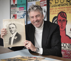 (Beeld: Ruud de Wild in het depot van het Meertens Instituut. Foto Monique Kooijmans)