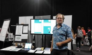 Haar collega Guus van den Brekel had een eigen expositiestand over het vinden van de full-text van een artikel, ‘How to get the pdf’, open access-buttons en andere handige tips hiervoor. Van den Brekel was hiermee een van de drie awardwinnaars tijdens het galadiner in Cardiff City Hall.