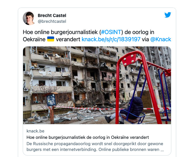 ‘De NOS verslaat de oorlog met de hulp van burgerspeurders’, zo kopte NRC eerder deze week. Steeds meer en vaker gebruiken klassieke media open source intelligence (OSINT)-technieken, iets wat we al gewend waren van organisaties als Bellingcat. Tijdens de aankomende VOGIN-IP-lezing, op 11 mei in de OBA, is voor dit actuele onderwerp ook ruim aandacht.