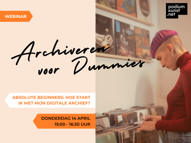 Op 14 april (15-16:30 uur) organiseert Podiumkunst.net het eerste webinar uit de reeks Archiveren voor Dummies: ‘Absolute beginners: hoe start ik met mijn digitale archief?’