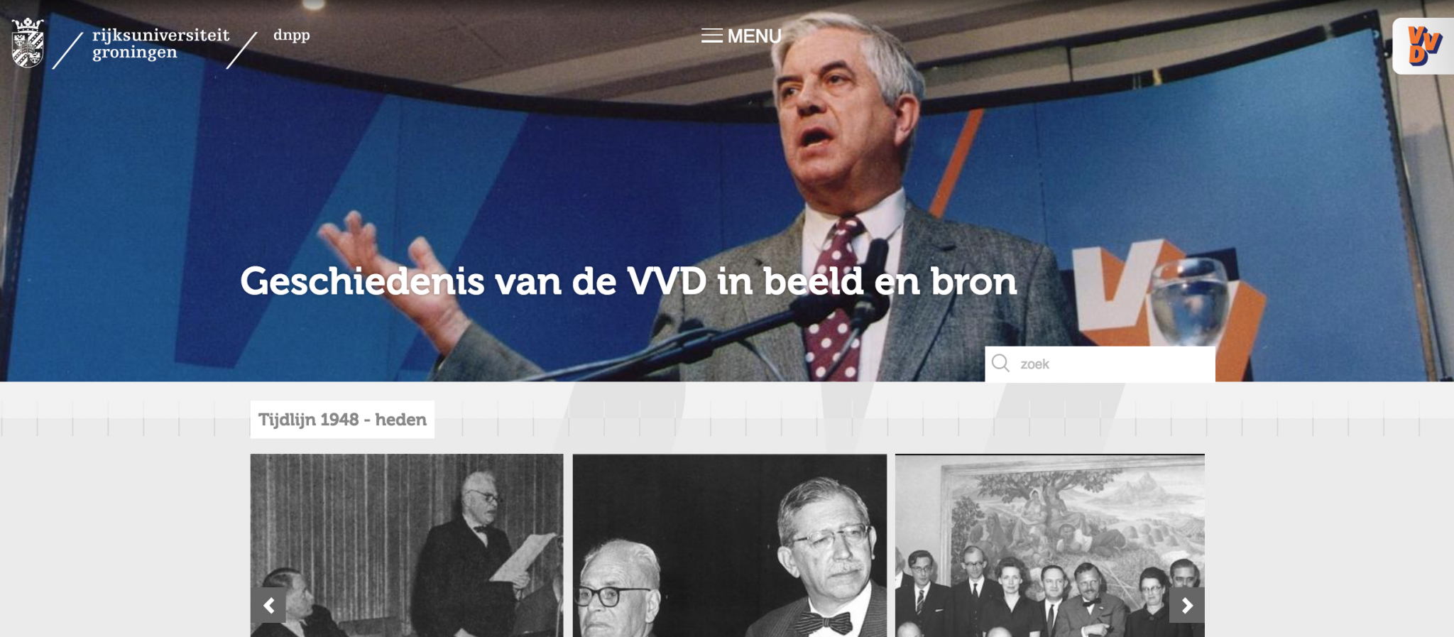 De VVD is de eerste partij waarvan het Documentatiecentrum Nederlandse Politieke Partijen (DNPP) van de Rijksuniversiteit Groningen de geschiedenis digitaal in beeld heeft gebracht. De site, waarvoor het DNPP eindverantwoordelijk is, geeft een beeld van de geschiedenis van 70 jaar VVD.